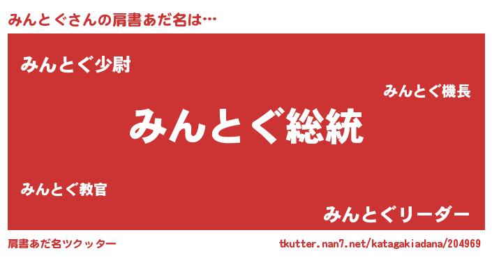 | 意味不明あだ名 | 『自称みんとぐ』『しいたけ科みんとぐ属』 |