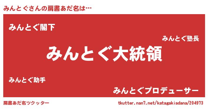 | ヒーロー風カッコイイあだ名 | 『ウルトラみんとぐマン』『魔戒騎士ミン』 |