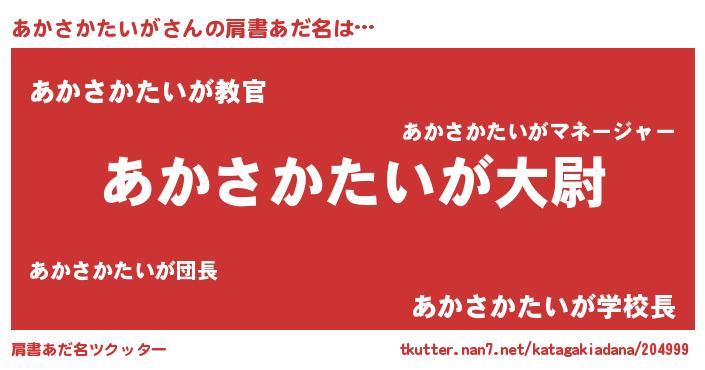 | 男性向けラノベタイトル風あだ名 | 『転生したらあかさかたいがだった件』 |