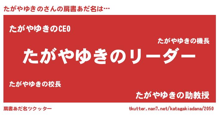 伝説のあだ名 | 『解き放たれた遊び人たがやゆきの』 |