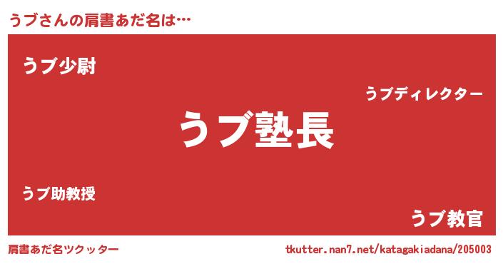 | ピコ太郎風あだ名 | 『ウブ六郎』『ウウ太郎』『ウコ次郎』 |