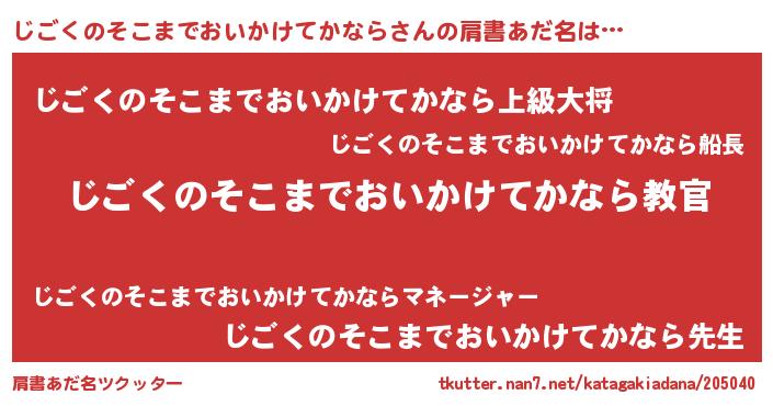 | ヘコむあだ名 | 『じごくのそこまでおいかけてかなら(小並感)』 |