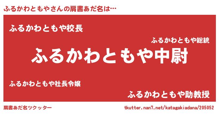 | ヘコむあだ名 | 『ふるかわともや(笑)』『ふるにゅー』 |