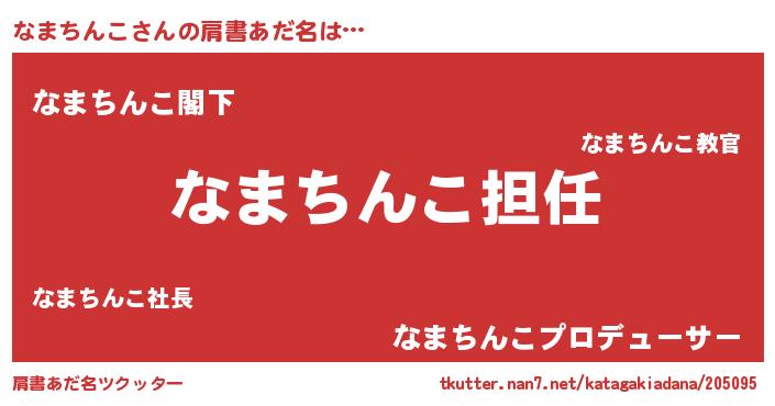 | 男性向けラノベタイトル風あだ名 | 『誰もが恐れるあのなまちんこが、ぼくの専属メイドになるようです。』 |
