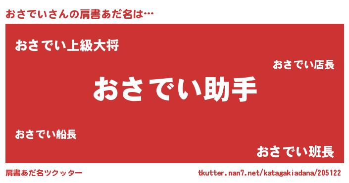| 欧米人風あだ名 | 『ダニエルおさでい』『ウサインおさでい』 |