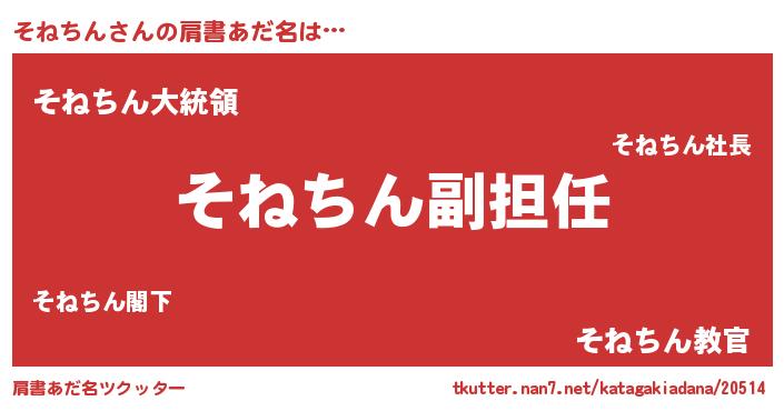 | 女子向けラノベタイトル風あだ名 | 『異世界で失敗しない100のそねちん』 |