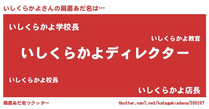 | 男性向けラノベタイトル風あだ名 | 『はたらくいしくらかよさま!』 |