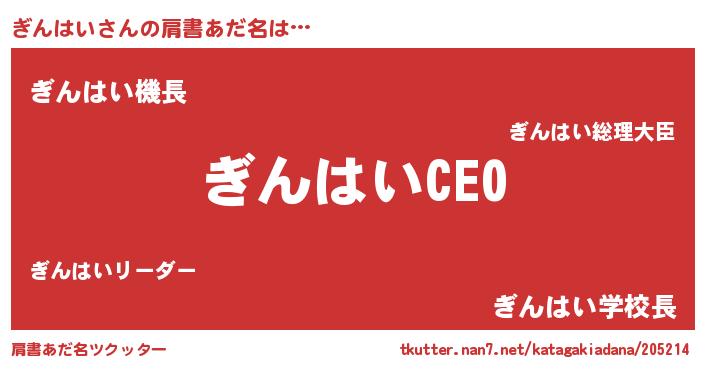 | ヘコむあだ名 | 『ぎんふぇ~』『なまこ酢』 |