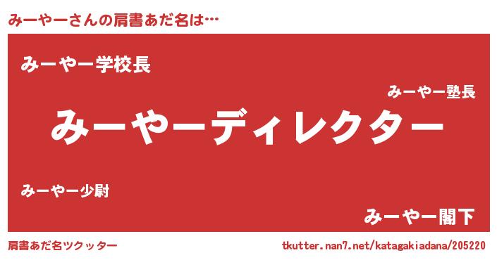 | ヘコむあだ名 | 『みー太郎』『みーやー(爆)』 |