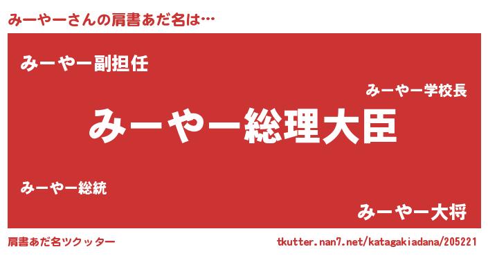 | 意味不明あだ名 | 『みーやーフォーエバー』『自称みーやー』 |