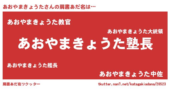 | 男性向けラノベタイトル風あだ名 | 『ダンジョンにあおやまきょうたを求めるのは間違っているだろうか』 |