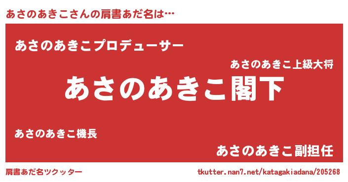 | 恥ずかしいあだ名 | 『アサノアキコデラックス』『あさちん』 |