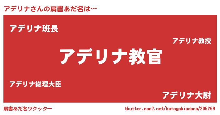 | 男性向けラノベタイトル風あだ名 | 『この素晴らしい世界にアデリナを!』 |