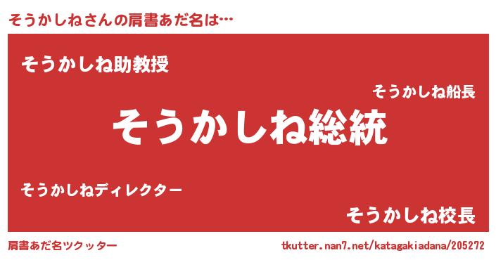 | 意味不明あだ名 | 『自称そうかしね』『永久保存そうかしね』 |
