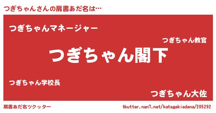 | 意味不明あだ名 | 『自称つぎちゃん』『永久保存つぎちゃん』 |
