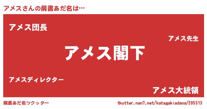 | 欧米人風あだ名 | 『ケンブリッジアメス』『ウサインアメス』 |