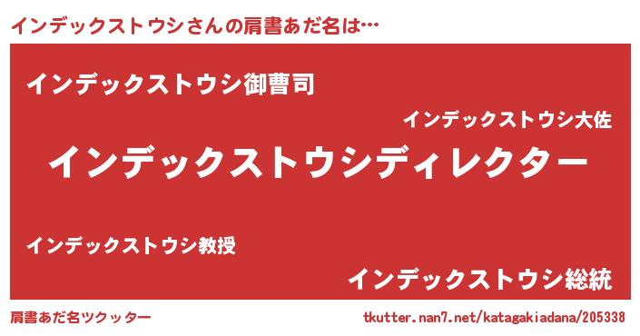 | 男性向けラノベタイトル風あだ名 | 『はたらくインデックストウシさま!』 |