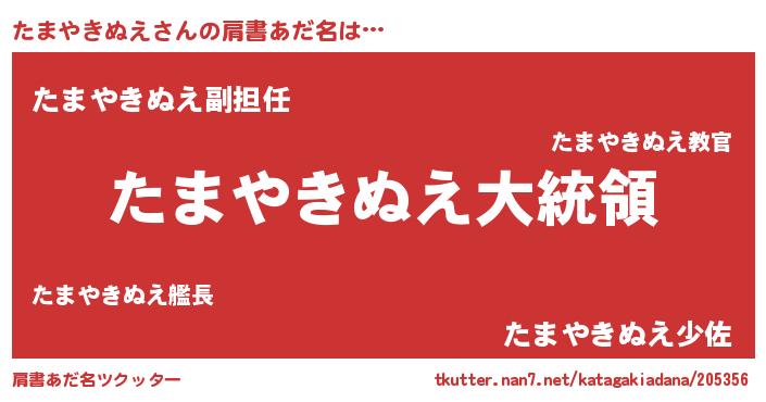 | 欧米人風あだ名 | 『たまやきぬえクリステル』 |