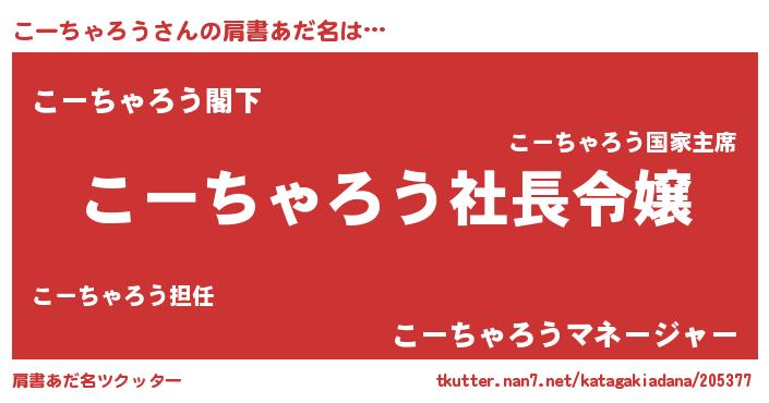 | 男性向けラノベタイトル風あだ名 | 『こーちゃろうの憂鬱』 |