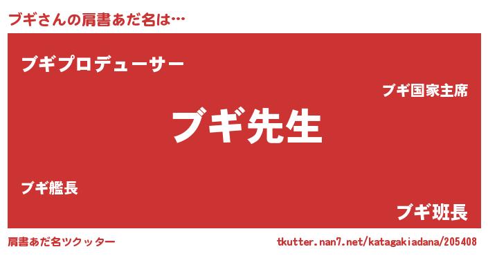 | ヘコむあだ名 | 『ブギ(小並感)』『ブギっちょ』 |
