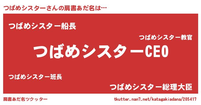 | 2回繰り返すあだ名 | 『つばつば』『とぽとぽ』『つつばば』 |