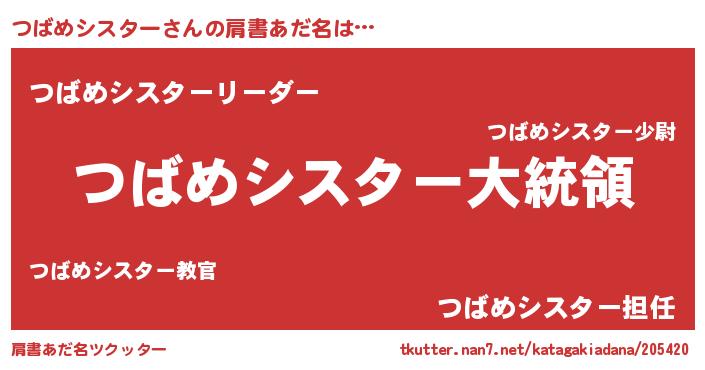 | ファンタジー風あだ名 | 『エターナルツバメシスターー』 |