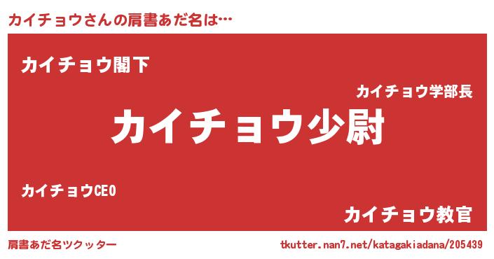 | ピコ太郎風あだ名 | 『カカ太郎』『カコ一郎』『カイ史郎』 |
