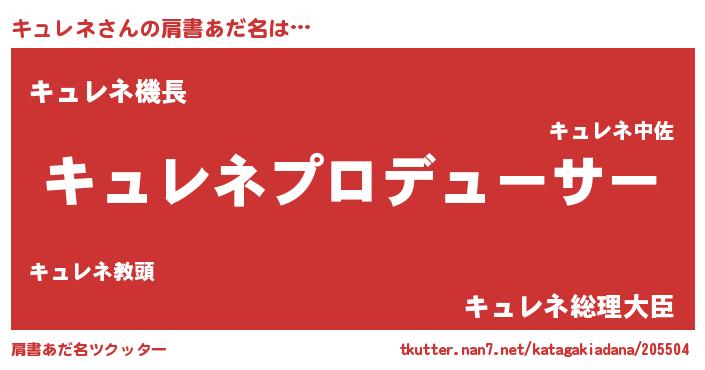 | ヘコむあだ名 | 『豆乳』『キュレネ(笑)』『キュっ子』 |