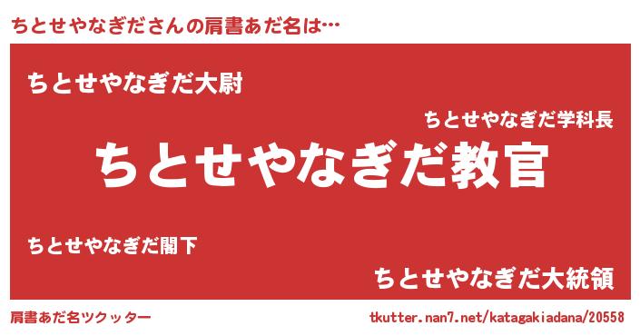 | 男性向けラノベタイトル風あだ名 | 『この素晴らしい世界にちとせやなぎだを!』 |