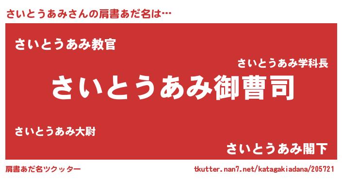 | 胡散臭い通販商品みたいなあだ名 | 『必ず成功する霊験あらたかなお札…その名も「さいとうあみ」』 |