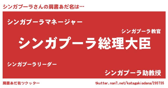 | 男性向けラノベタイトル風あだ名 | 『やはりシンガプーラの青春ラブコメはまちがっている 』 |
