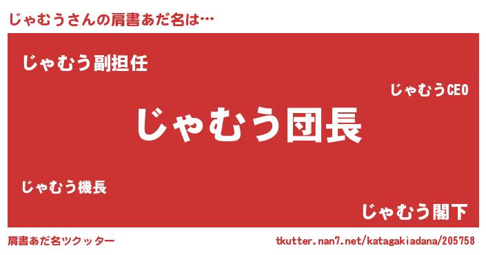 | 意味不明あだ名 | 『とにかく怪しいじゃむう』 |