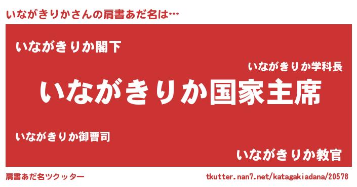 | 女子向けラノベタイトル風あだ名 | 『いながきりかの雑貨屋さん』 |