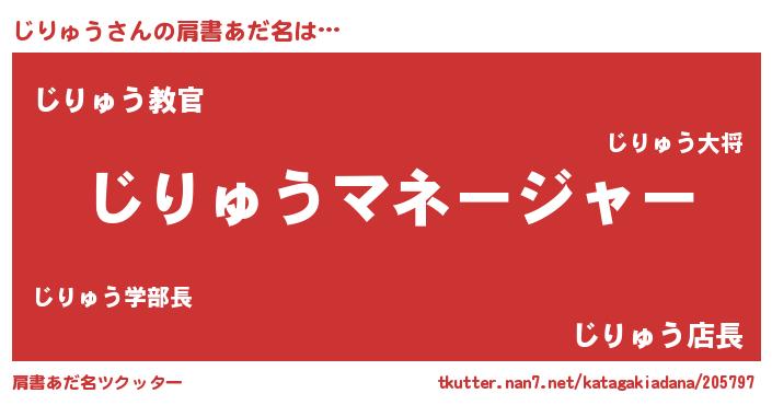 | 意味不明あだ名 | 『住所不定無職じりゅう(9歳)』 |