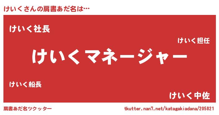 | 男性向けラノベタイトル風あだ名 | 『はたらくけいくさま!』『けいくの憂鬱』 |