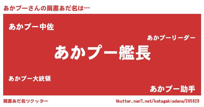 | 男性向けラノベタイトル風あだ名 | 『緋弾のアカプー』 |