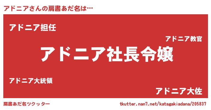 | 胡散臭い通販商品みたいなあだ名 | 『必ず成功する霊験あらたかなお札…その名も「アドニア」』 |