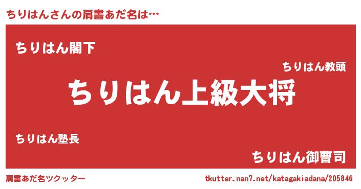 | 料理風あだ名 | 『ちりはんごはん』 |