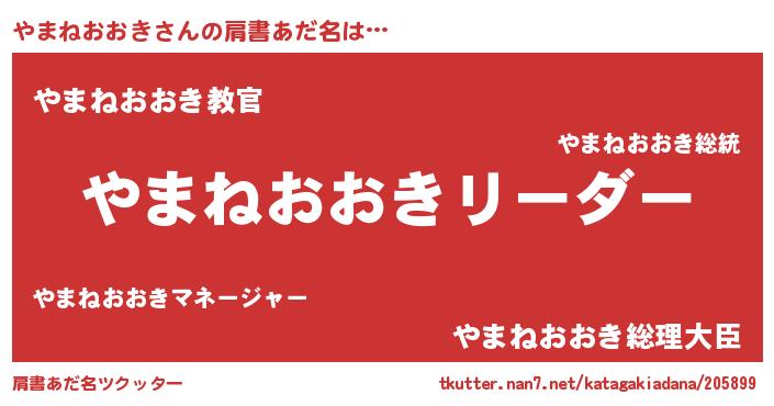 | ポケモン風あだ名 | 『ヒヤマネオオキ』『ヤーマイ』 |