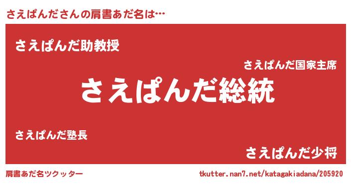 | 欧米人風あだ名 | 『ケンブリッジさえぱんだ』 |
