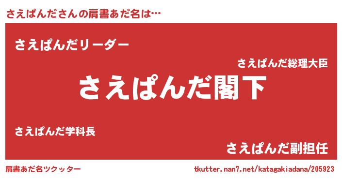 | 欧米人風あだ名 | 『ケンブリッジさえぱんだ』 |