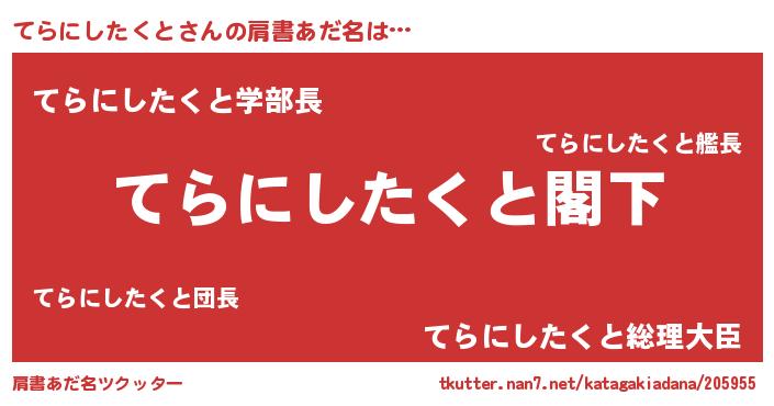 | 女子向けラノベタイトル風あだ名 | 『てらにしたくとなんてお断りですっ。』 |
