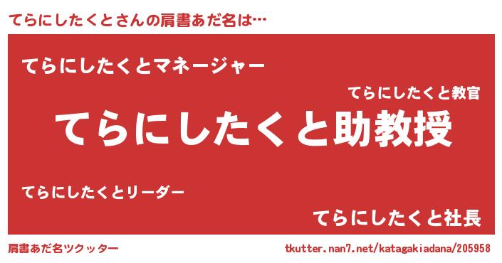 | 女子向けラノベタイトル風あだ名 | 『てらにしたくと恋絵巻』 |