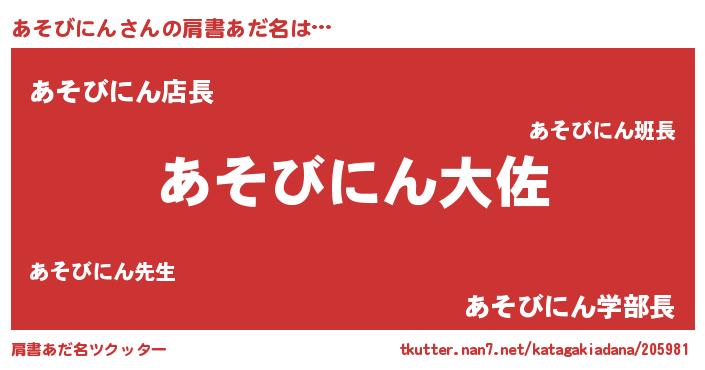 | 男性向けラノベタイトル風あだ名 | 『あそびにん~年齢イコール彼女いない歴の魔法使い~』 |