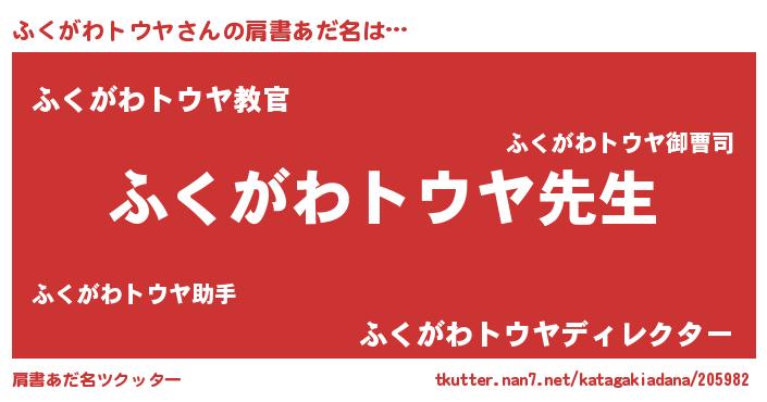 | ヘコむあだ名 | 『ふくがわトウヤ(笑)』『ふくにゅー』 |