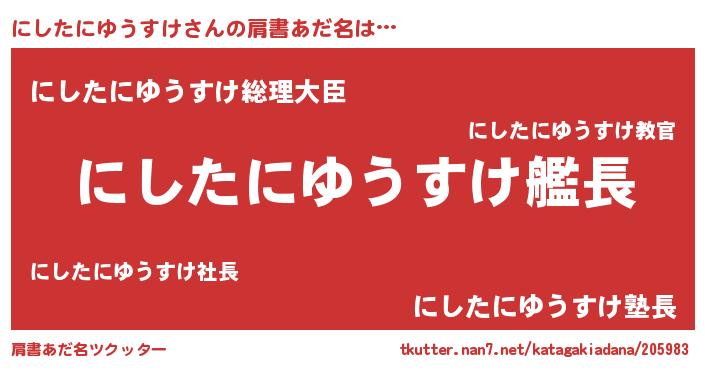| 男性向けラノベタイトル風あだ名 | 『冴えないにしたにゆうすけの育てかた』 |