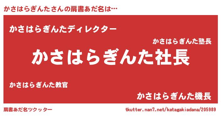 | 男性向けラノベタイトル風あだ名 | 『かさはらぎんたの憂鬱』 |