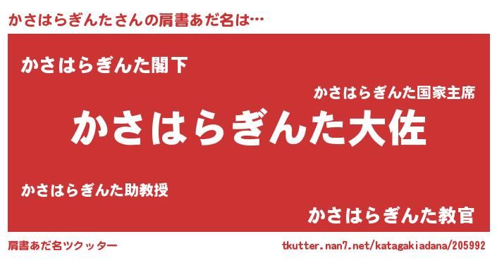 | 男性向けラノベタイトル風あだ名 | 『カサハラギンタスレイヤー』 |