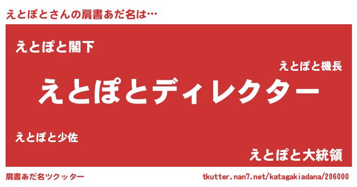 | 欧米人風あだ名 | 『アンジェラ・えとぽと』 |