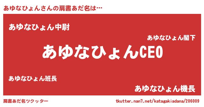 | 男性向けラノベタイトル風あだ名 | 『あゆなひょんの憂鬱』 |